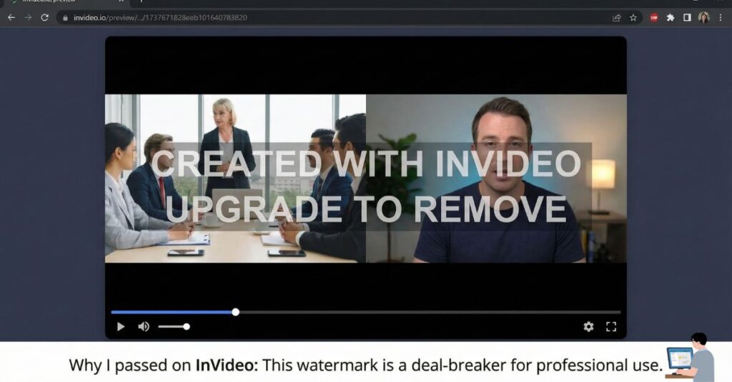 • InVideo AI: You will see this tool recommended everywhere. And honestly? It is amazing. But the free version plasters a giant watermark across the screen. You cannot use it for ads unless you pay.